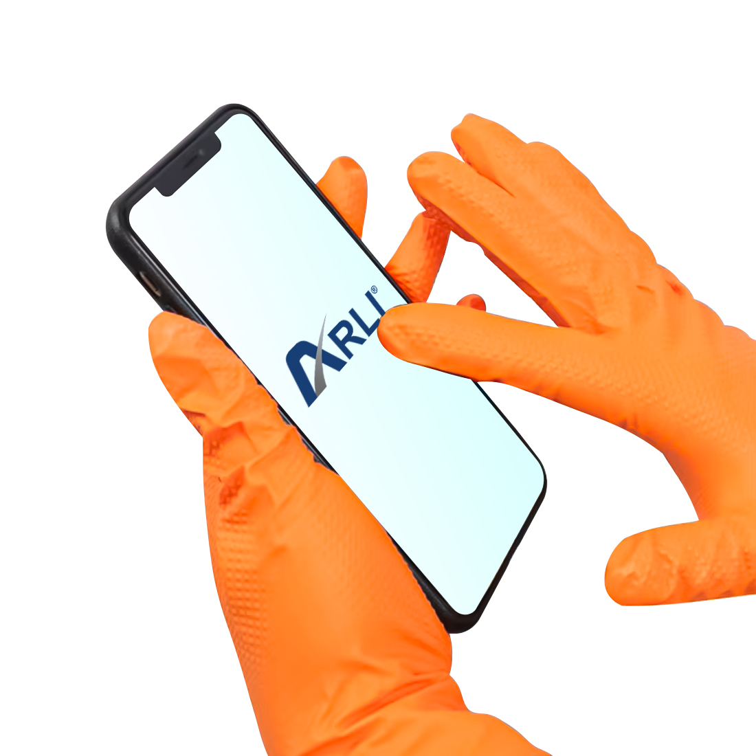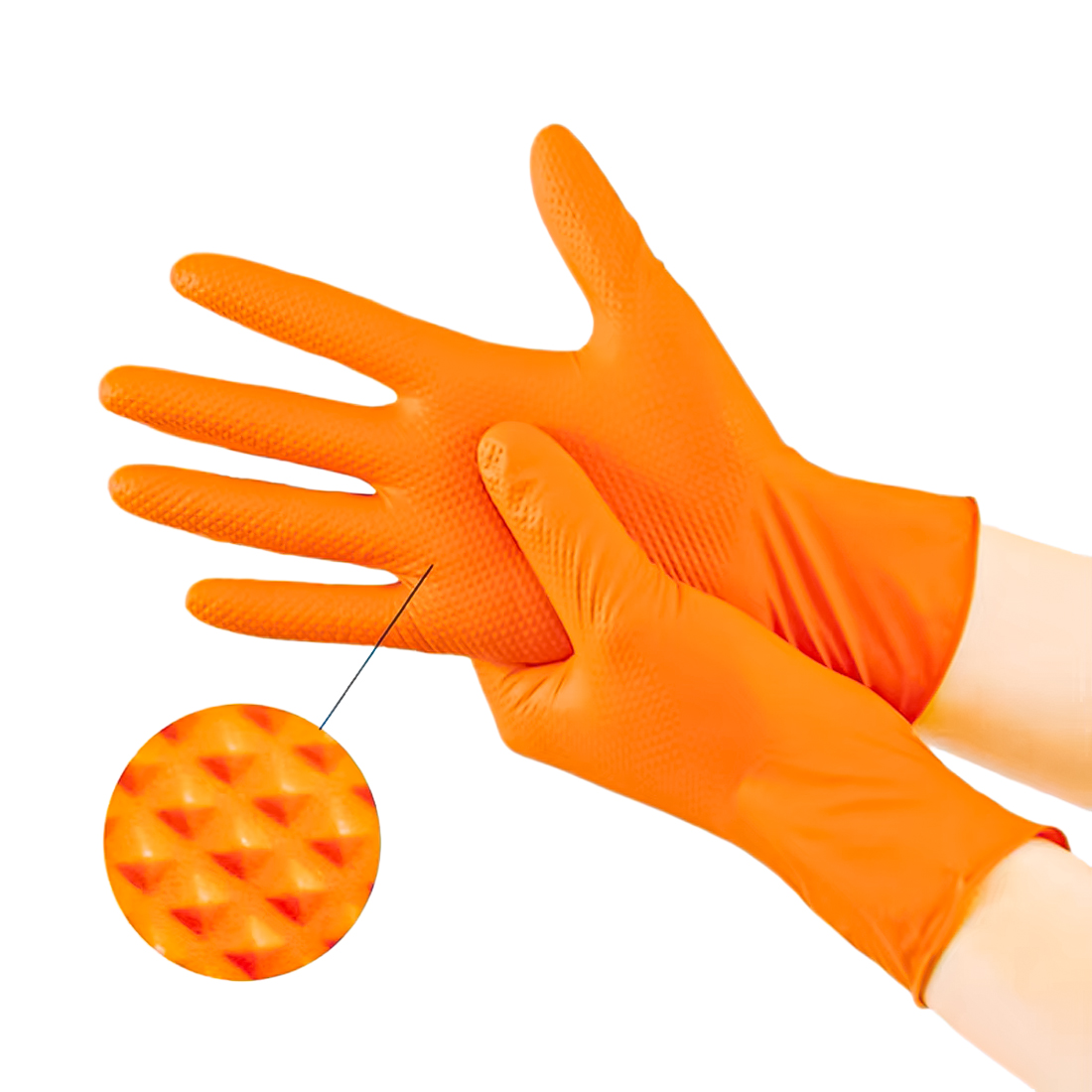 Produktinformationen "50x Edge Grip Nitril Einweghandschuhe Größe L orange Diamantstruktur puderfrei NBR Arbeitshandschuhe Werkstatt "