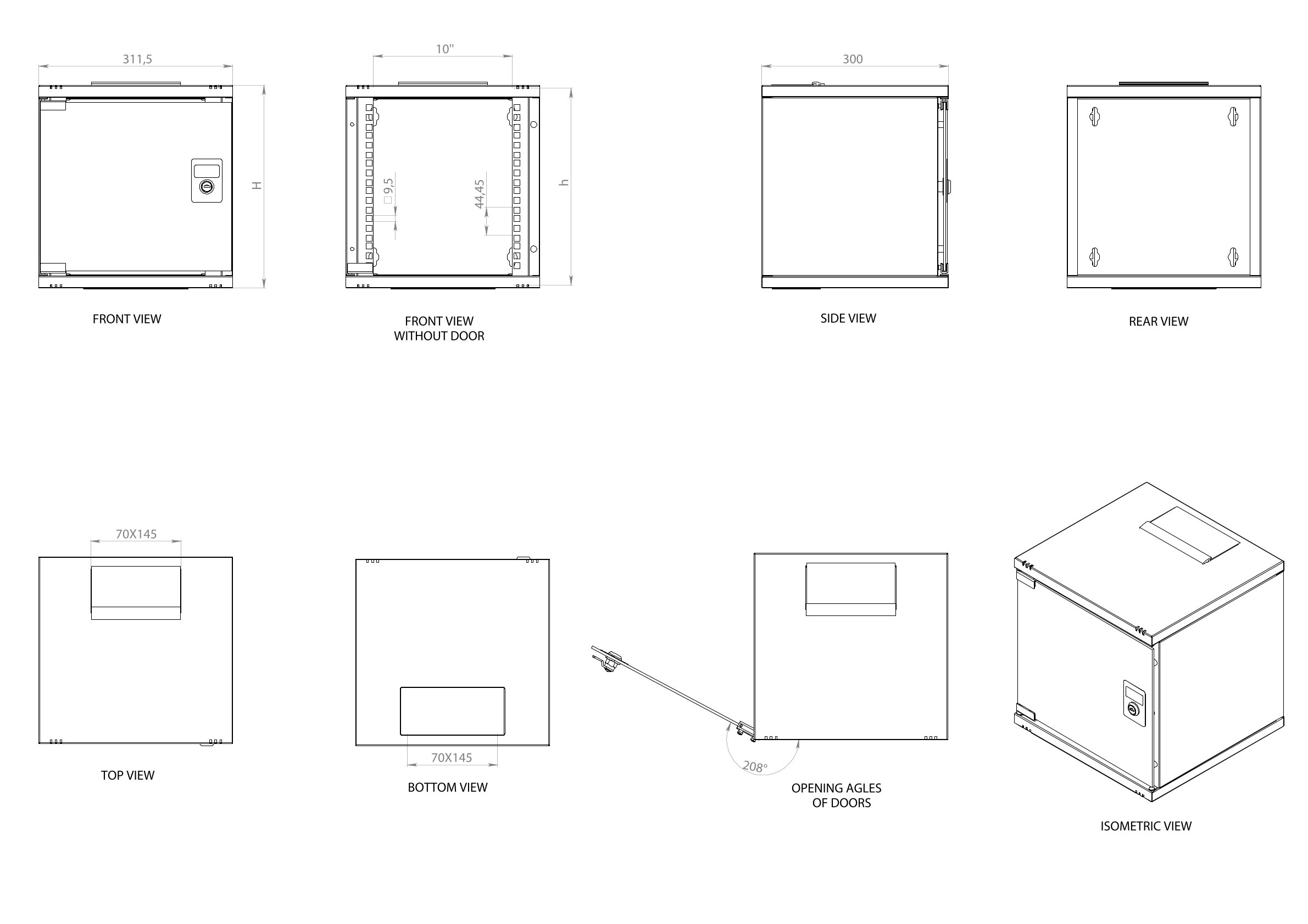 - Verstellbare Geräteschienen (3 Stufen): Tiefenverstellbare 10"-Montageschienen für Switches, Router, Patchpanel oder Dosenleisten.