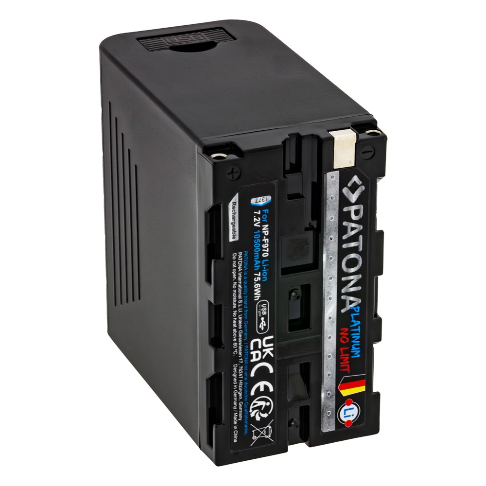 Mit Stolz präsentieren wir unseren neuen Akku für Sony NP-F970 aus unserer Platinum-Serie. Der PATONA Platinum Akku für Sony NP-F970 verfügt über einen integrierten PD-Ein- bzw. Ausgang, welcher es ermöglicht, den Akku mit einem herkömmlichen USB-C-Ladegerät aufzuladen. Ein USB-C Kabel ist im Lieferumfang dabei. Sie finden unsere PATONA-Ladegeräte am Ende des Angebotes unter dem Reiter „Zubehör“. Ein spezielles Akku-Ladegerät wird dafür nicht benötigt.