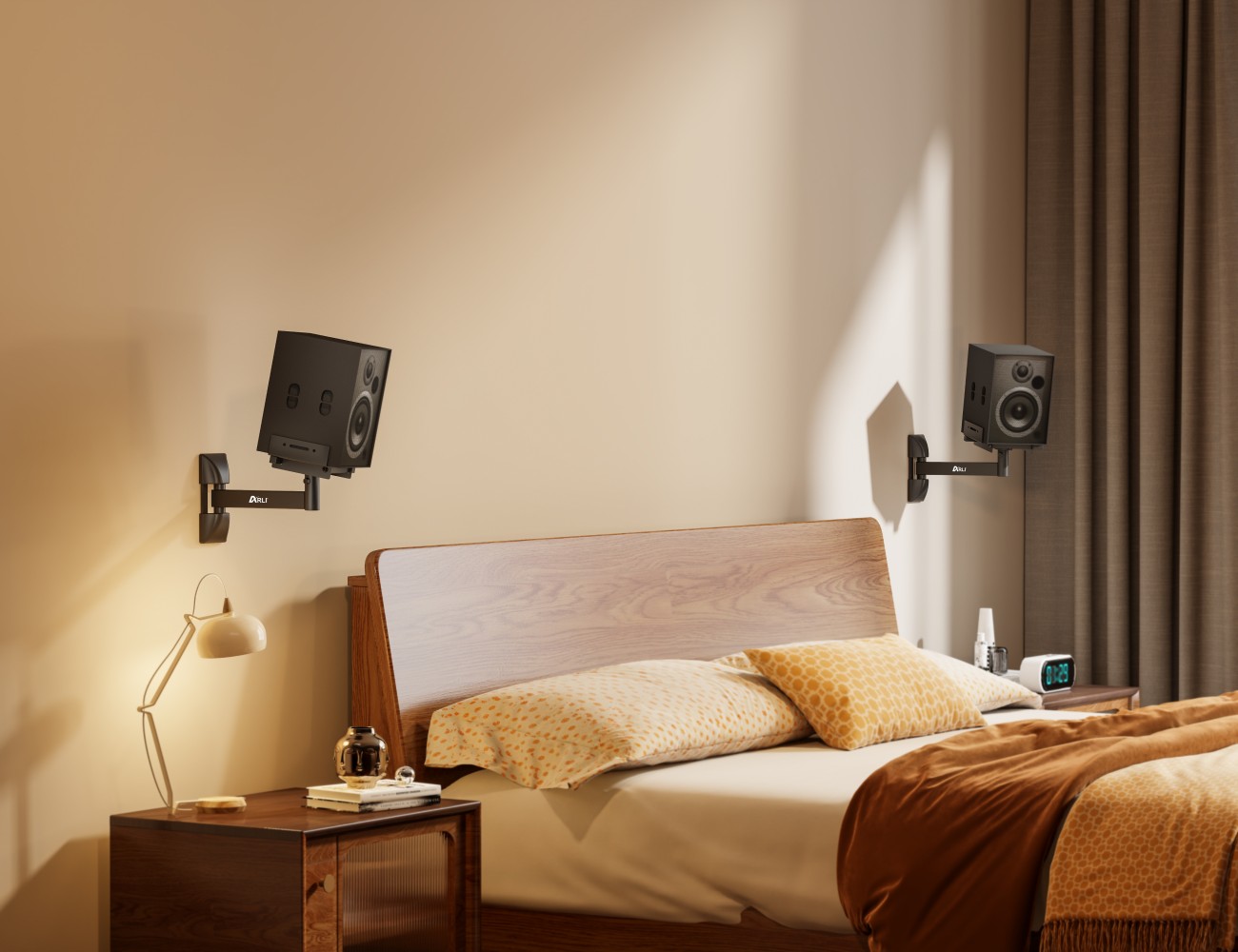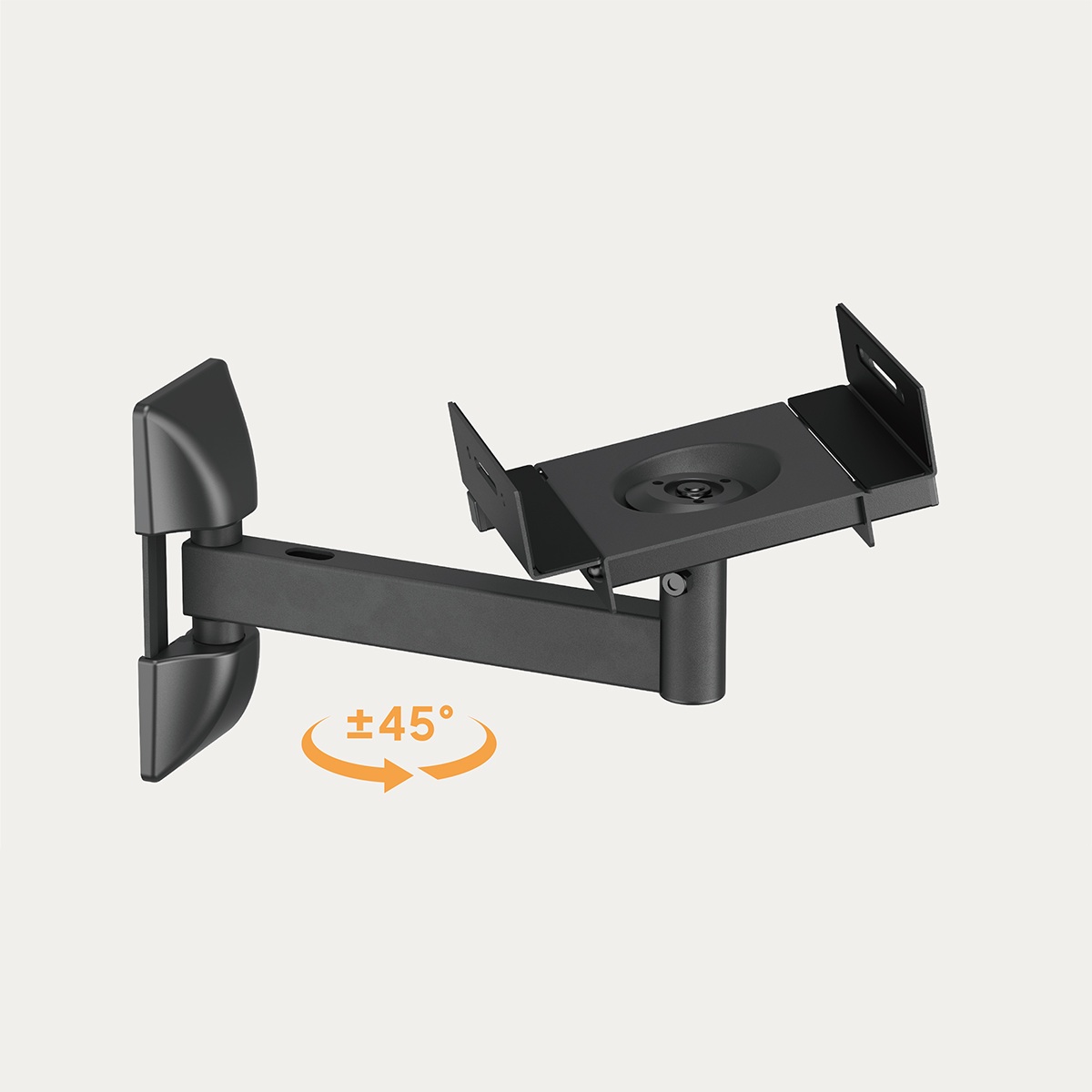 Zudem bietet der schwenkbare Arm mit verdeckter Kabelführung zusätzliche Flexibilität und sorgt für eine ordentliche Optik rund um die Lautsprecher. Dieses Modell verfügt über eine hervorragende Tragfähigkeit von bis zu 25 kg pro Halterung.