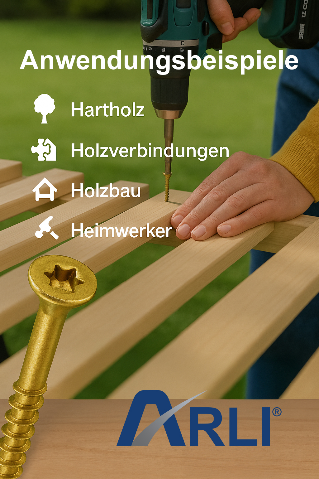 - Diese Schraube wurde für die Verwendung in Spanplatten, Holzwerkstoffen und ähnlichen Materialien entwickelt. Verwenden Sie sie nicht für Anwendungen, für die sie nicht vorgesehen ist, um Beschädigungen oder Ausfälle zu vermeiden.