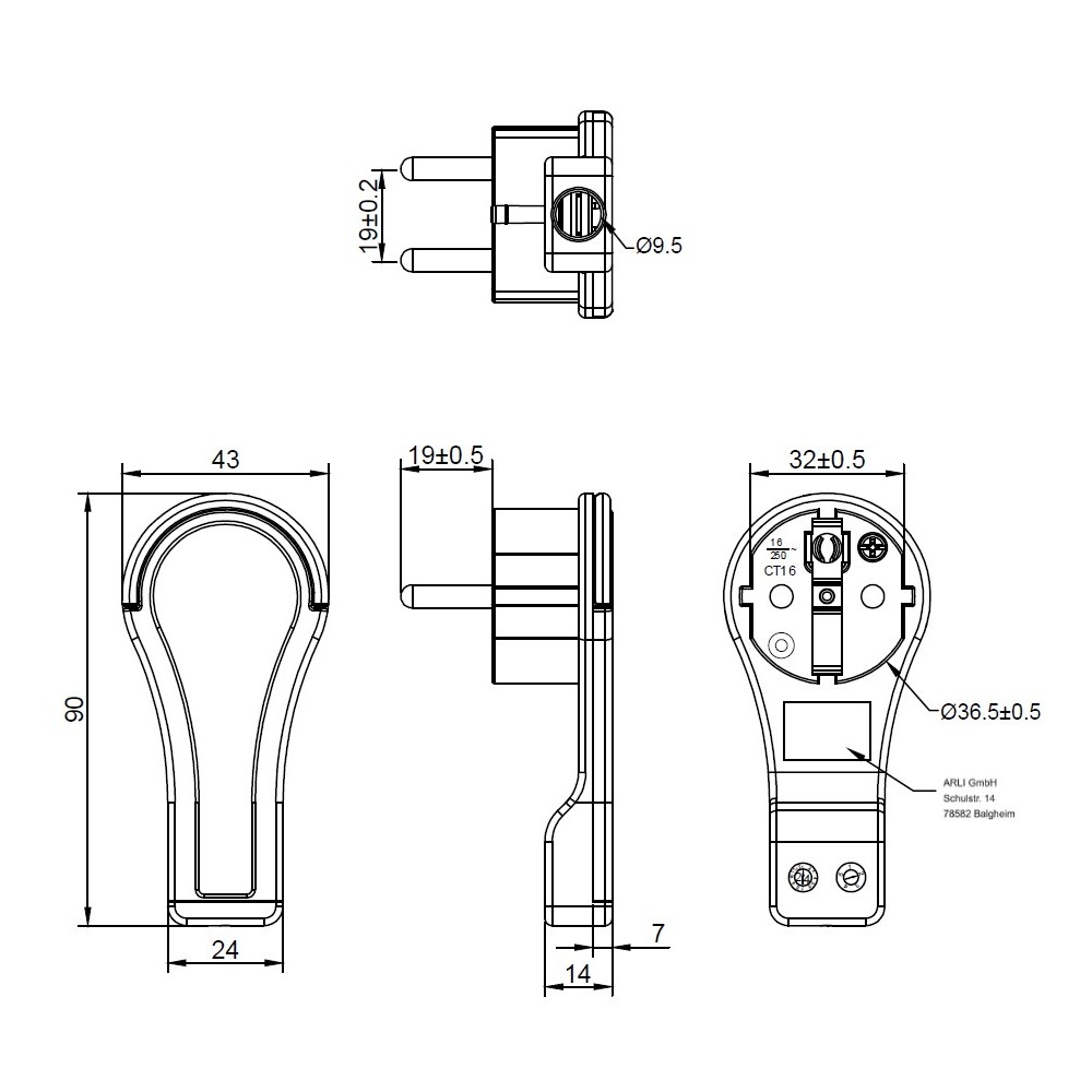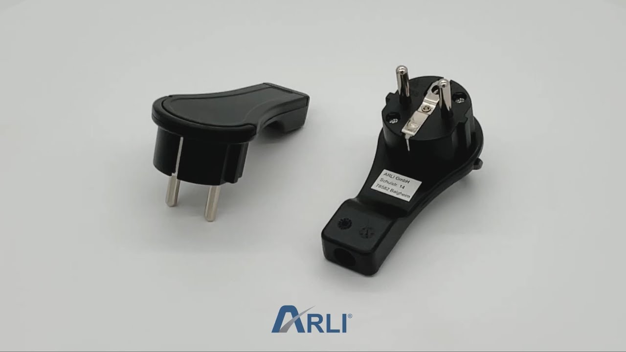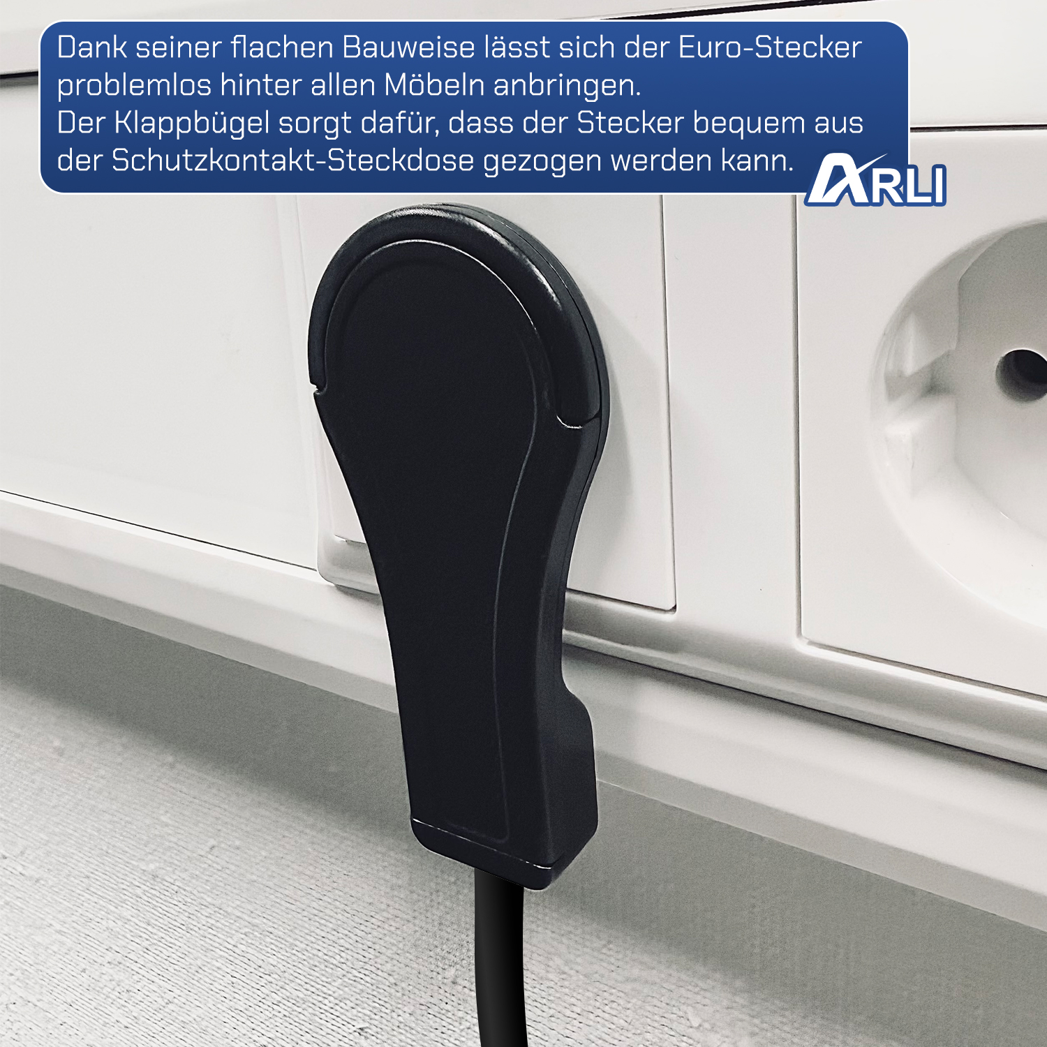 ARLI Schutzkontakt Winkelstecker schwarz – extra flach mit Bügel