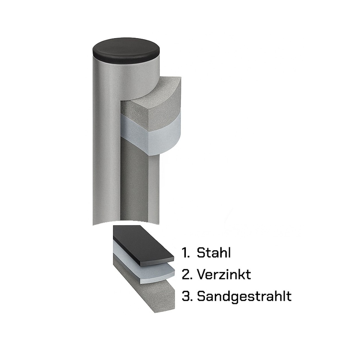 Stabiler Standfuß aus verzinktem und zusätzlich sandgestrahltem Stahl zur Befestigung von Satellitenantennen auf Terrassen, Balkonen, Flachdächern oder anderen ebenen Untergründen. Die Kombination aus Verzinkung und Sandstrahlung bietet erhöhten Schutz gegen Rost und UV-Einwirkung. Die mitgelieferte Mastkappe schützt die Mastöffnung zusätzlich vor Witterungseinflüssen.