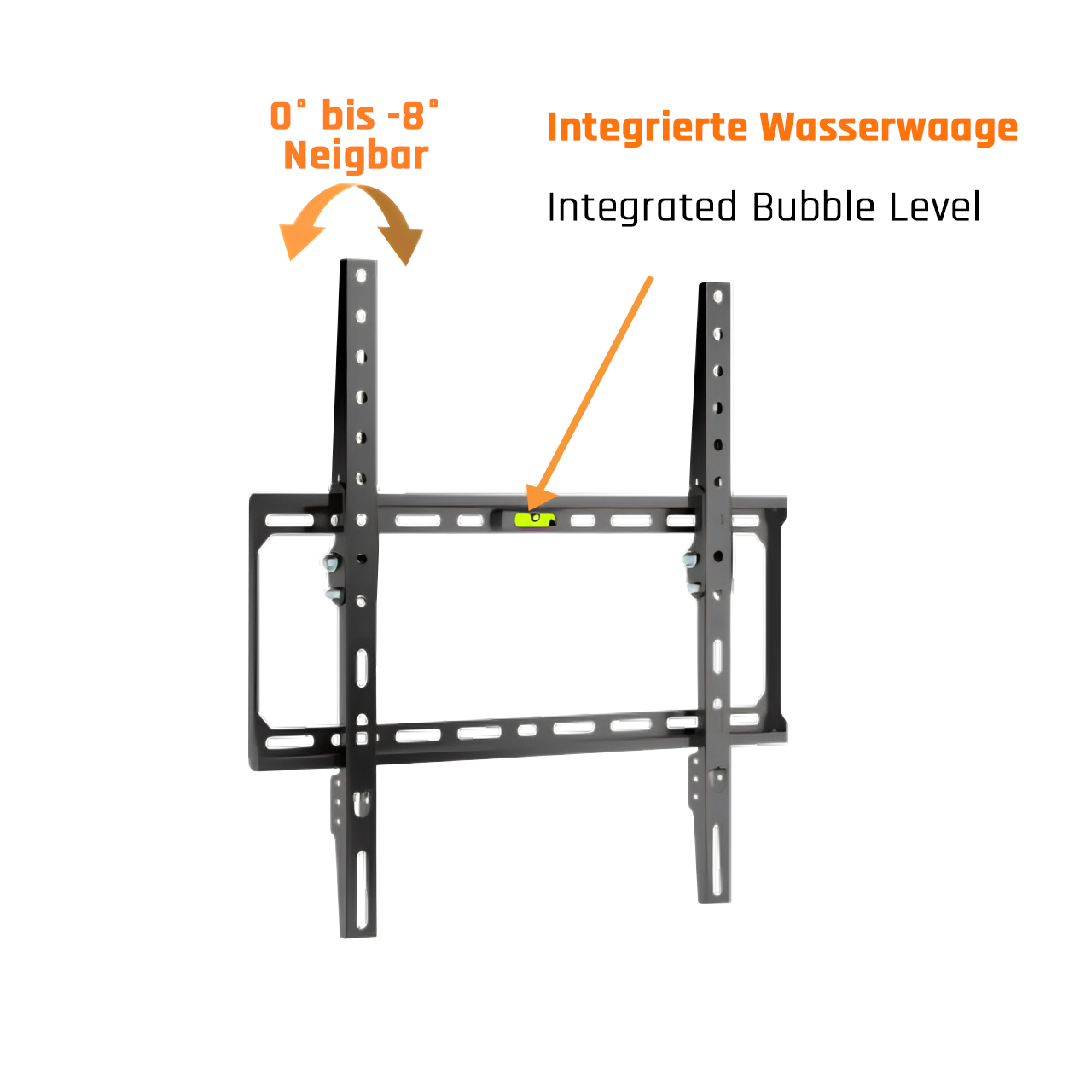 - Wasserwaage: Integriert auf der Wand-/VESA-Platte