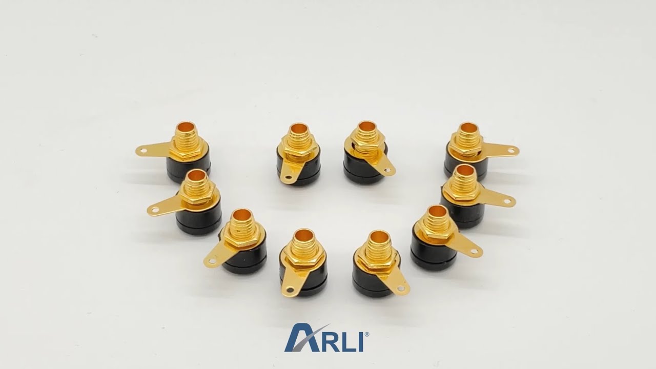 100x ARLI Bananenbuchse schwarz mit Lötfahne vergoldet 4 mm²