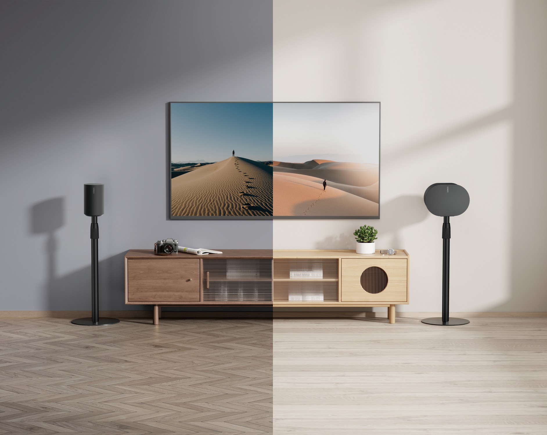 Der höhenverstellbare Lautsprecher Ständerfuß von ARLI ist kompatibel mit Sonos Era 100 und 300 und ermöglicht eine präzise Positionierung für verbesserten Klang. Diese Ständer sind speziell darauf ausgelegt, sich nahtlos in das elegante Design der Sonos Era Lautsprecher einzufügen. Sie bieten eine stabile Basis und werten zugleich die Optik des Audiosystems auf. Die höhenverstellbare Funktion ermöglicht die Positionierung der Lautsprecher auf optimaler Hörhöhe. Das integrierte Kabelmanagement hält die Verkabelung ordentlich und geschützt.