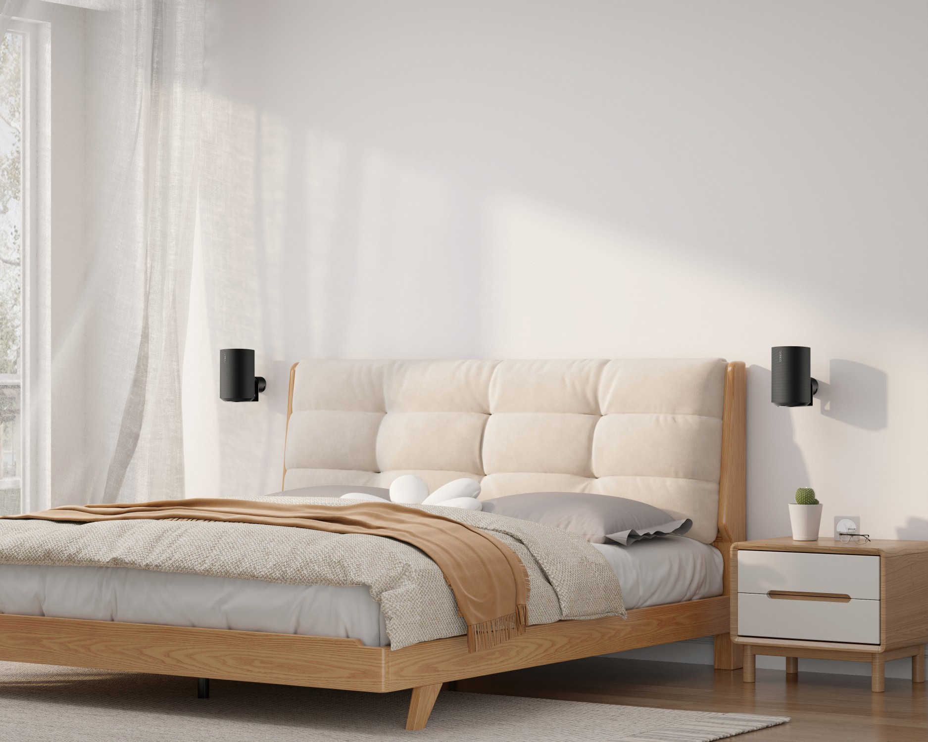 Das Lautsprecher-Wandhalterungs-Set von ARLI ist kompatibel mit den Sonos Era 100 und Era 300 Lautsprechern. Die Halterungen ermöglichen eine Neigung, Schwenkung und eine 360-Grad-Drehung, um den gewünschten Hörwinkel individuell einzustellen. Die Montage ist einfach, und das integrierte Kabelmanagement trägt zu einem aufgeräumten Gesamtbild bei, passend für unterschiedliche Wohn- und Arbeitsumgebungen.