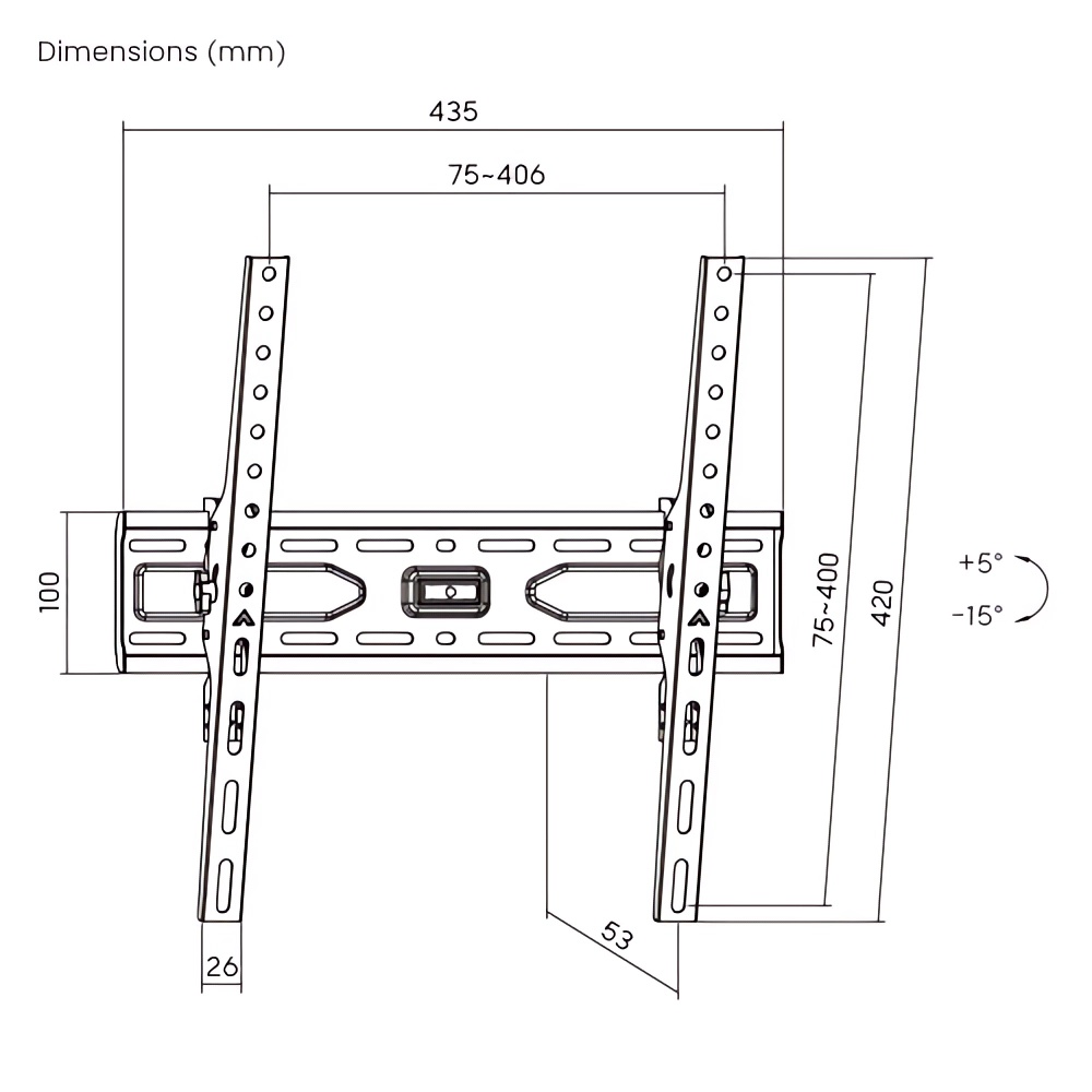 - VESA-Kompatibilität: 75×75, 100×100, 100×150, 150×100, 100×200, 200×100, 150×150, 200×200, 200×300, 300×200, 200×400, 400×200, 300×300, 300×400, 400×300, 400×400
