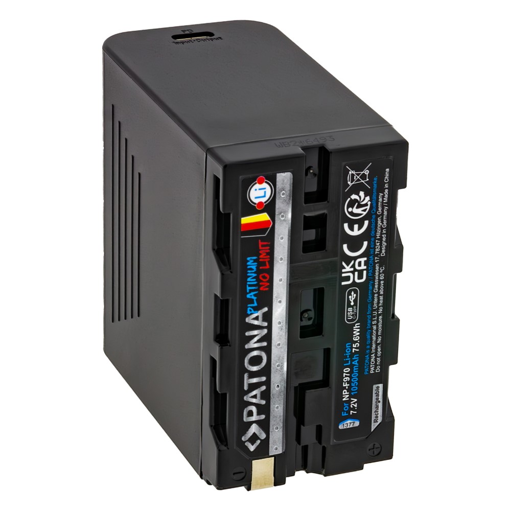 Mit Stolz präsentieren wir unseren neuen Akku für Sony NP-F970 aus unserer Platinum-Serie. Der PATONA Platinum Akku für Sony NP-F970 verfügt über einen integrierten PD-Ein- bzw. Ausgang, welcher es ermöglicht, den Akku mit einem herkömmlichen USB-C-Ladegerät aufzuladen. Ein USB-C Kabel ist im Lieferumfang dabei. Sie finden unsere PATONA-Ladegeräte am Ende des Angebotes unter dem Reiter „Zubehör“. Ein spezielles Akku-Ladegerät wird dafür nicht benötigt.